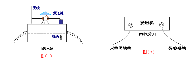 發送機在水塔內安放的位置根據水塔的不同結構而定,最好放置于冬暖夏涼處。如圖4幾種常見的安裝示意圖供參考。如果是山頂水糟,可制做一個帶百頁窗與防雨棚的鐵皮箱如圖5,將發送機放在其中。