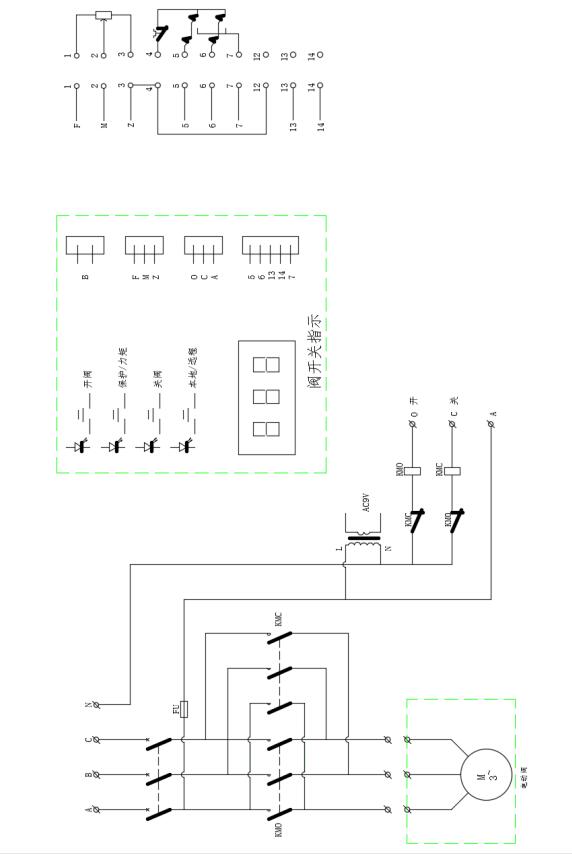 (3)用電纜參照本說明書所附電原理圖將控制器端子和電動裝置的端子連接起來,如果用戶所訂購的電動裝置不帶現場外制按鈕,編號為12、13、14的接線端子不接即可,不會影響控制器的其他功能。