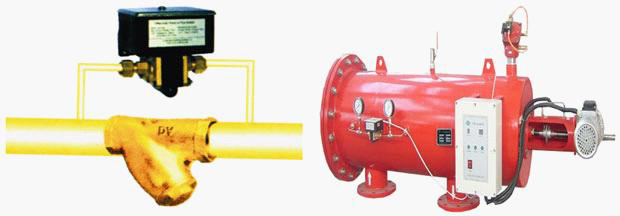 當水流經過過濾器筒體流出,在過濾器產生壓力差,隨著過濾的進行,壓差會升高,當壓差達到預設定值時(通常為50kpa)時,壓差開關閉合,輸出一個開關信號,如果是自動清洗過濾器,則此信號送到控制盤,控制盤執行清洗指令,啟動電機或電動閥開始做循環反沖清洗,同時打開排污閥,如果是手動清洗過濾器,則提供警報信號提醒用戶清洗過濾器。