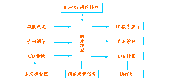 (5)自我診斷功能:a、鉑電阻斷線(xiàn);b、閥位反饋信號(hào)中斷; c、閥被鎖死。